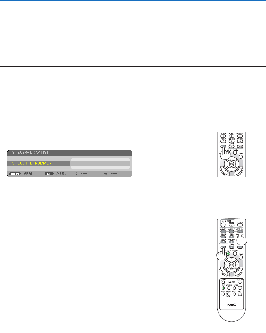 • Wird[AKTIV]fürdie[STEUER-ID]gewählt,kannderProjektornichtmitderFernbedienungbedientwerden,diedieSTEUER-ID-