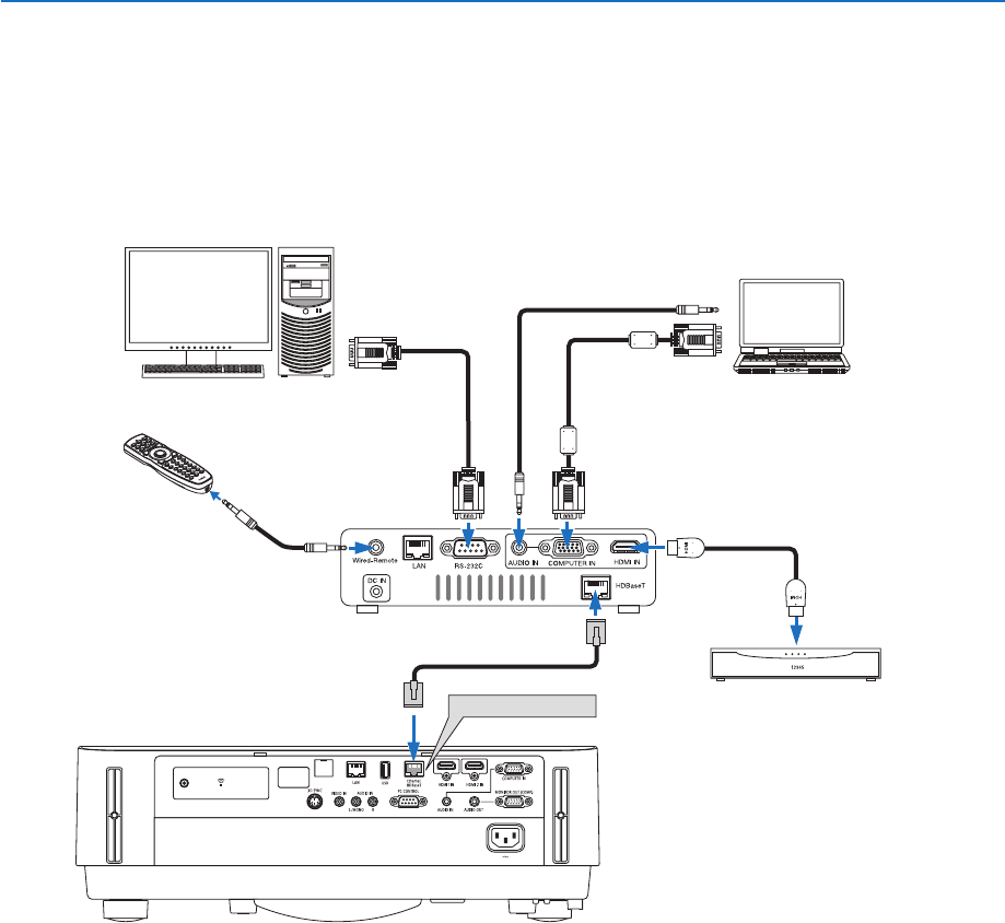 - Anschluss an ein HDBaseT-Übertragungsgerät (im Handel erhältlich)