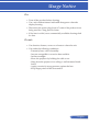 Appendices Problem: LED lighting message Power Indicator Indicator Condition Off Blinking light Note -- 0.5 sec On, 0.5 sec Off The projector is getting ready to turn on. Wait for a moment. 2.5 sec On, 0.5 sec Off Off Timer is enabled. -- Blue The projector is turned on.