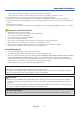 Important Information Safety Cautions Precautions Please read this manual carefully before using your NEC projector and keep the manual handy for future reference. CAUTION To turn off main power, be sure to remove the plug from power outlet. The power outlet socket should be installed as near to the equipment as possible, and should be easily accessible. CAUTION TO PREVENT SHOCK, DO NOT OPEN THE CABINET. THERE ARE HIGH-VOLTAGE COMPONENTS INSIDE. REFER SERVICING TO QUALIFIED SERVICE PERSONNEL.