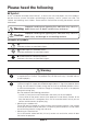Please heed the following Symbol In this “Installation and Adjustment Manual”, to ensure the safe and proper use of the product, prevent harm to yourself and others and damage to property, various symbols are used. The symbols and meanings are as follows. Please read this manual after ensuring the contents are well understood. Warning Improper handling and ignoring this indication may result in bodily harm such as death, serious injury and so on.