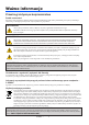 Ważne informacje Przestrogi dotyczące bezpieczeństwa Środki ostrożności Przed użyciem projektora U300X/U250X/U310W/U260W firmy NEC należy dokładnie przeczytać tę instrukcję i zachować ją w dostępnym miejscu do wykorzystania w przyszłości. OSTRZEŻENIE Aby wyłączyć zasilanie, należy odłączyć wtyczkę z gniazdka zasilania sieciowego. Gniazdko zasilania sieciowego powinno znajdować się maksymalnie blisko urządzenia i musi być łatwo dostępne.