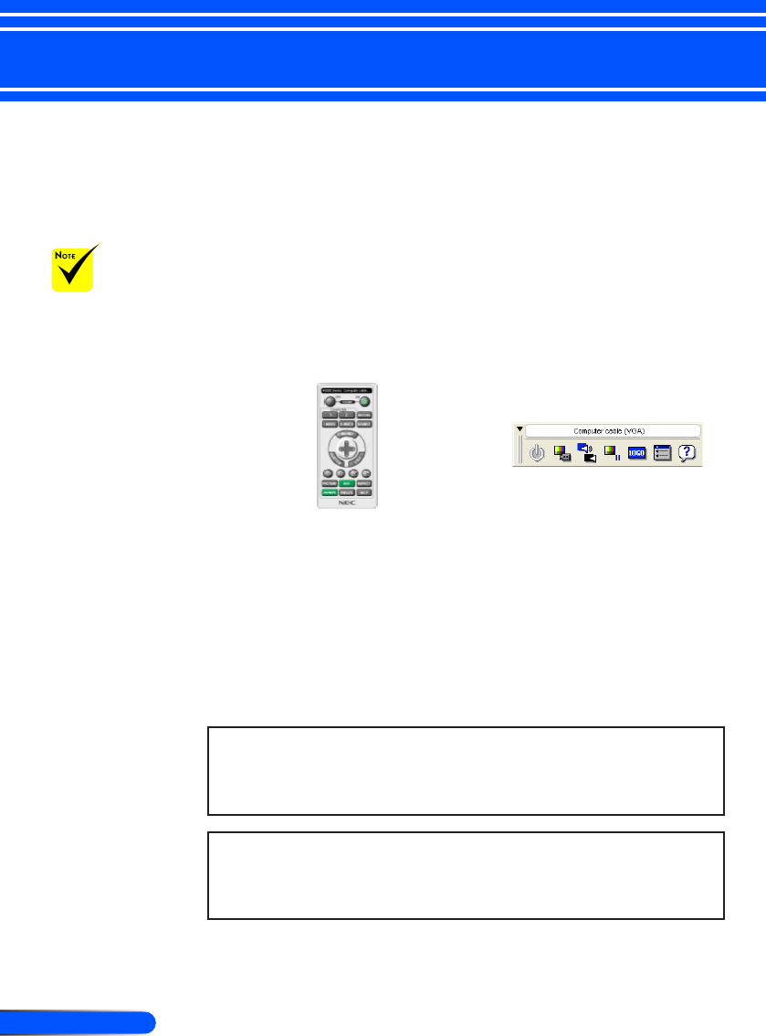 üzerinden projektör çalıştırma veya kapatma ve sinyal seçimi gibi