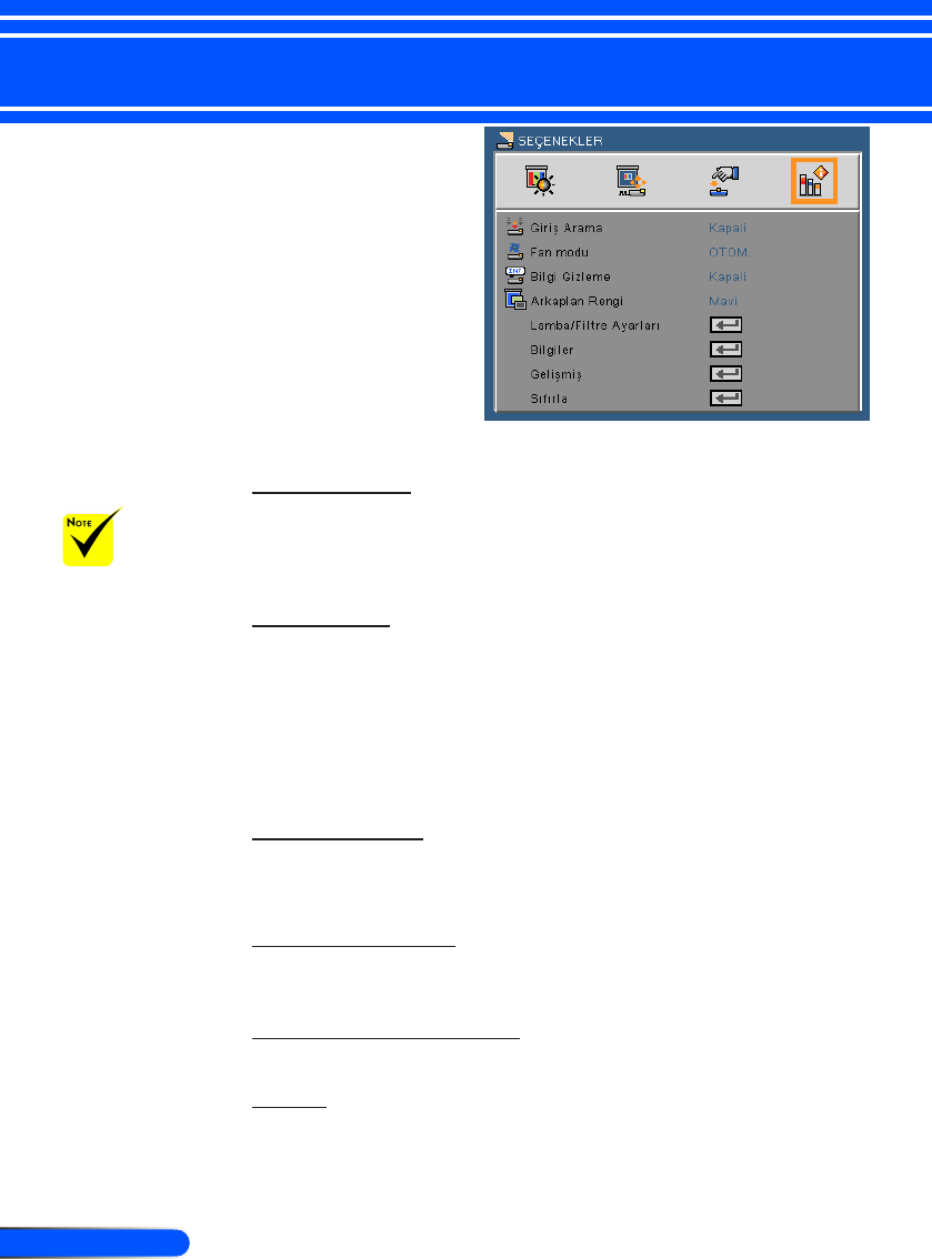 Yerleşik fanlar yüksek hızda çalışır. Projektörü yaklaşık 2500