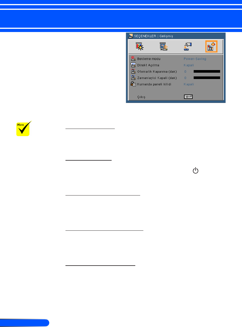 sayım bittiğinde projektör otomatik olarak kapanacaktır (dakika