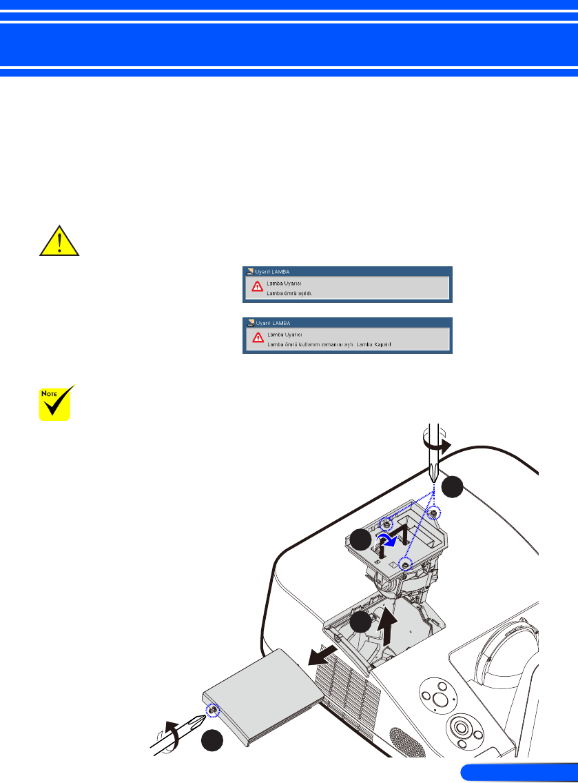 sürede değiştirin. Lambayı değiştirmeden önce, projektörün