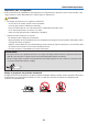 Información importante Precauciones Precaución Lea con cuidado este manual antes de utilizar el proyector NEC NP3200/NP2200/NP1200 y tenga el manual a mano para poder consultarlo más adelante. PRECAUCIÓN Para desactivar la alimentación asegúrese de extraer el enchufe de la toma de red eléctrica. La toma de red debe estar lo más cerca posible del equipo, y además debe ser fácilmente accesible. PRECAUCIÓN PARA EVITAR DESCARGAS ELÉCTRICAS, NO ABRA LA CAJA. EN EL INTERIOR HAY COMPONENTES CON ALTA TENSIÓN.