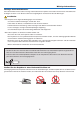Wichtige Informationen Sicherheitshinweise Vorsichtsmaßnahmen Lesen Sie dieses Handbuch bitte sorgfältig durch, bevor Sie den Projektor NEC NP610G, NP510G, NP410G, NP405G, NP310G, NP305G, NP510WG, NP410WG, NP610SG oder NP510WSG benutzen, und bewahren Sie das Bedienungshandbuch in greifbarer Nähe als spätere Referenz auf. VORSICHT Zum Ausschalten der Hauptspannung müssen Sie unbedingt den Netzstecker von der Netzsteckdose abziehen.