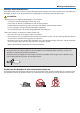 Wichtige Informationen Sicherheitshinweise Vorsichtsmaßnahmen Lesen Sie dieses Handbuch bitte sorgfältig durch, bevor Sie den Projektor NEC benutzen, und bewahren Sie das Bedienungshandbuch in greifbarer Nähe als spätere Referenz auf. VORSICHT Zum Ausschalten der Hauptspannung müssen Sie unbedingt den Netzstecker von der Netzsteckdose abziehen. Die Netzsteckdose sollte so nahe wie möglich am Gerät installiert werden und jederzeit leicht zugänglich sein.