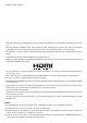6. Instalación y conexiones Conexión de la entrada HDMI Puede conectar la salida HDMI de un reproductor de DVD, reproductor de disco duro, reproductor Blu-ray o PC portátil al conector HDMI IN del proyector. NOTA: El conector HDMI IN es compatible con Enchufar y Usar (DDC2B). HDMI IN HDMI Cable HDMI (no suministrado) Utilice un cable High Speed HDMI®.