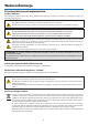 Ważne informacje Przestrogi dotyczące bezpieczeństwa Środki ostrożności Przed użyciem projektora firmy NEC należy dokładnie przeczytać tę instrukcję i zachować ją w dostępnym miejscu do przyszłego wykorzystania. PRZESTROGA Aby wyłączyć zasilanie, należy odłączyć wtyczkę z gniazda zasilania sieciowego. Gniazdo zasilania sieciowego powinno się znajdować jak najbliżej urządzenia i musi być łatwo dostępne. PRZESTROGA NIE WOLNO OTWIERAĆ OBUDOWY, ABY NIE DOSZŁO DO PORAŻENIA PRĄDEM ELEKTRYCZNYM.