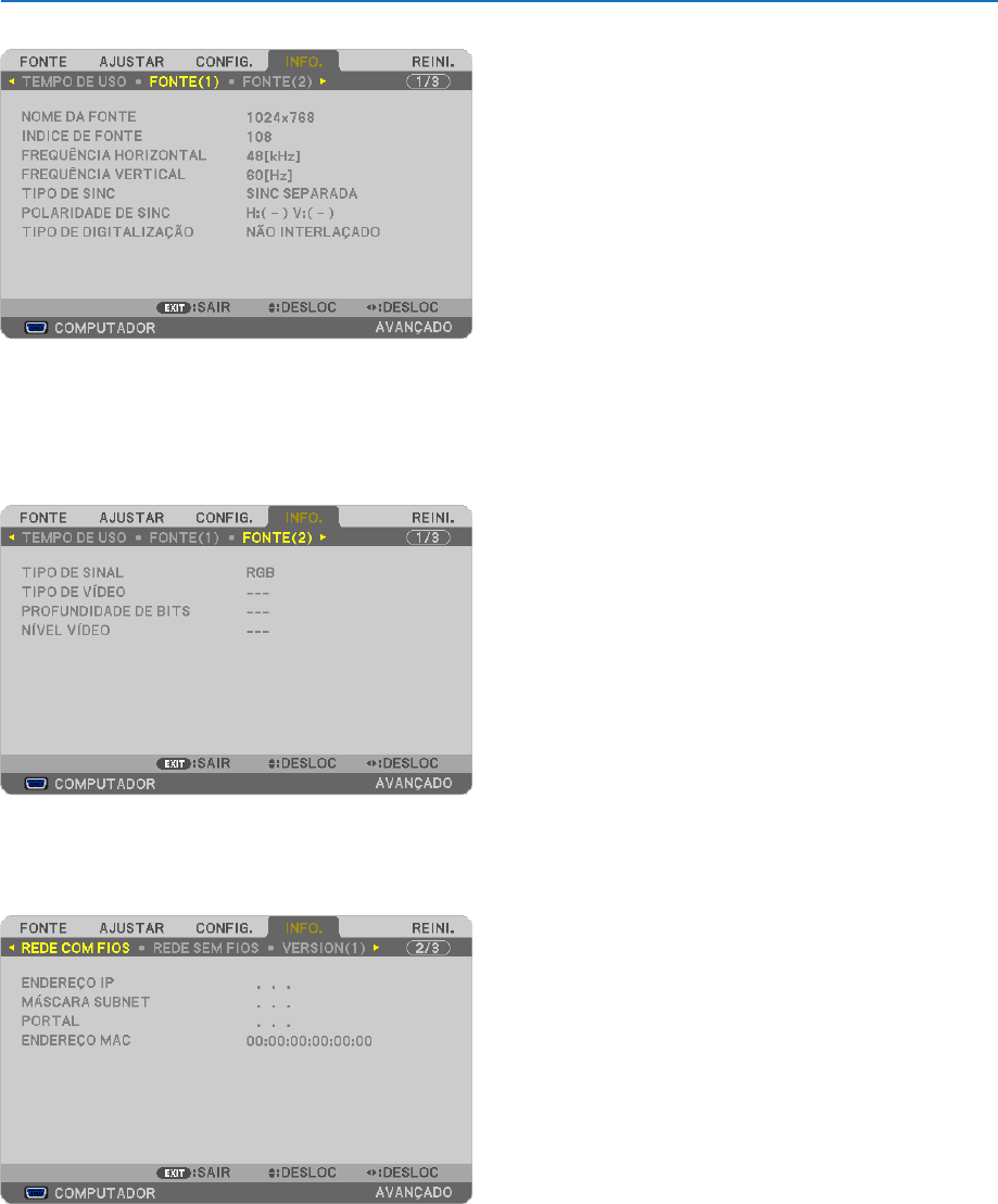 - (9) Controlando o Projetor Usando um Navegador HTTP (não suportado pelo PE501X)