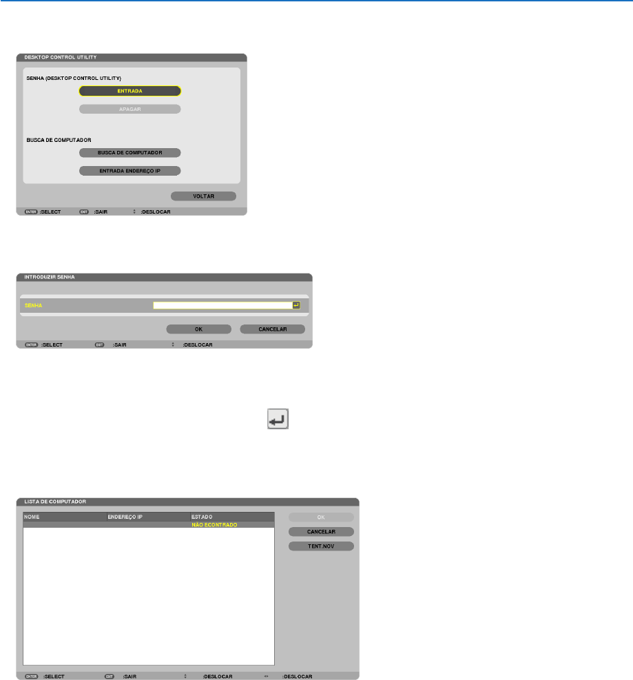 - (6) Usando o Projetor Para Operar Seu Computador através de uma rede local (Desktop Control Utility 1.0) (não suportado pelo PE501X)