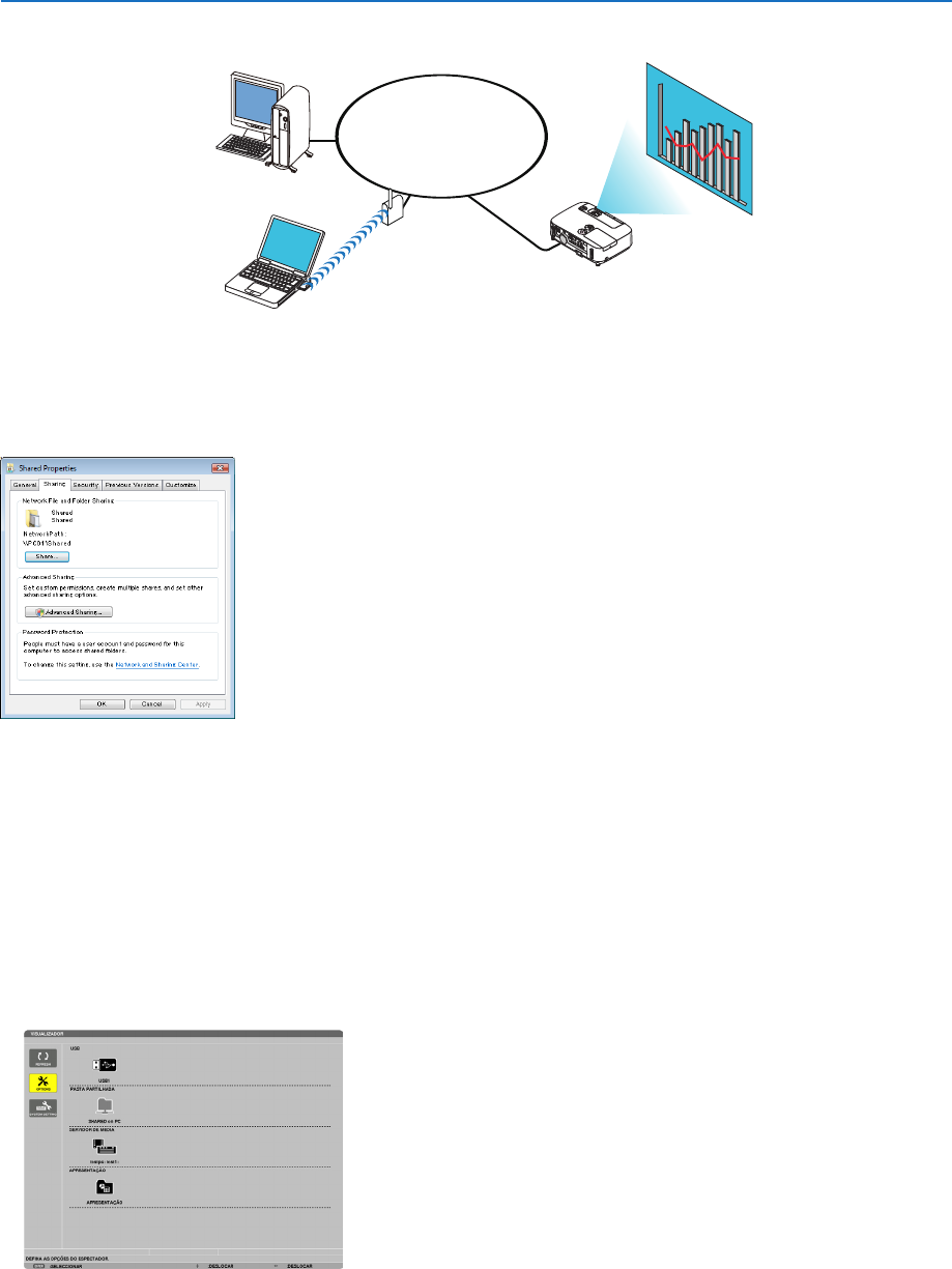 - (10) Projetando a Imagem da Tela do Seu Computador a Partir do Projetor Via Rede [PROJETOR DE REDE] (não suportado pelo PE501X)