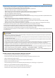 6. Montaż i połączenia OSTRZEŻENIE Odbijanie obrazu * Instalacja projektora pod sufitem musi zostać przeprowadzona przez wykwalifikowanego technika. W celu uzyskania dalszych informacji należy skontaktować się z dealerem firmy NEC. * Nie wolno próbować własnoręcznie zainstalować projektora. • Projektora można używać wyłącznie na poziomej i twardej powierzchni. W razie upadku projektora na ziemie może dojść do obrażeń ciała oraz poważnego uszkodzenia urządzenia.