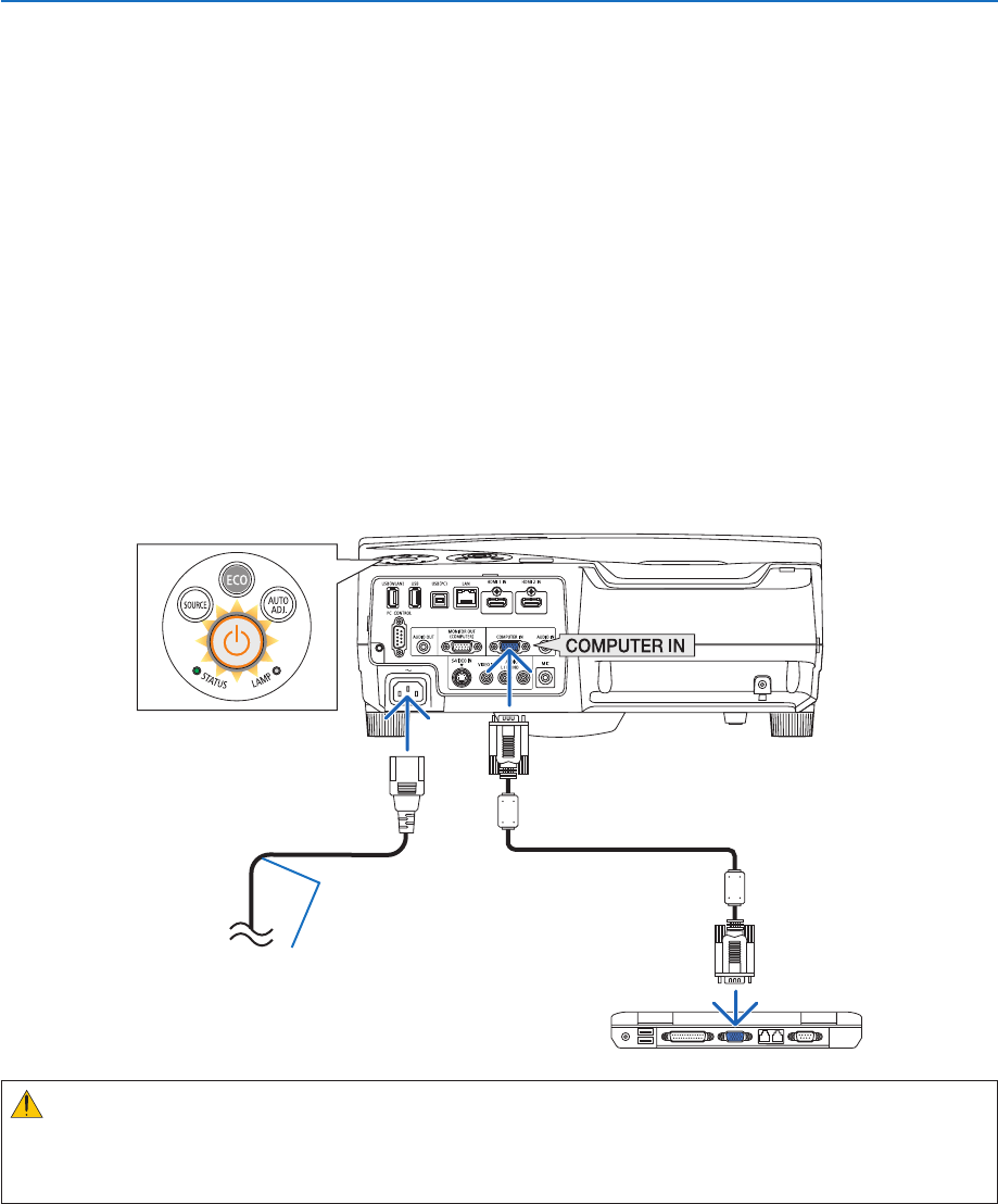 Conecte o cabo do computador (VGA) entre o conector de ENT. COMPUTADOR do projetor e a porta do computador