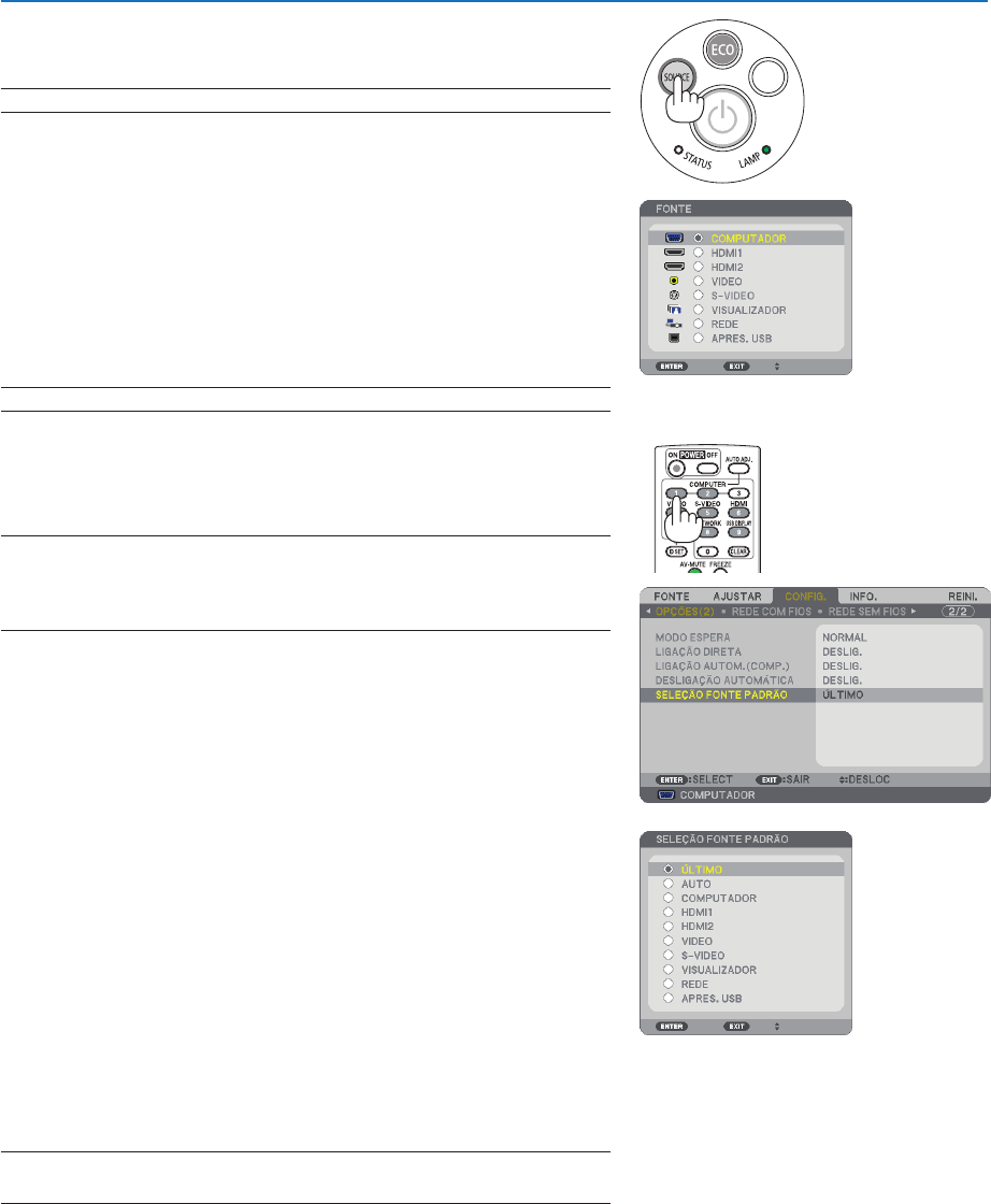 PressioneobotãoSOURCEumavez.Oprojetorprocuraráafontedeentrada