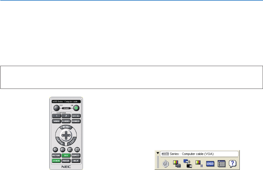 Usandoosoftwaredeutilitário“VirtualRemoteTool”incluídonoCD-ROMdoNECProjector,atela(oubarrade