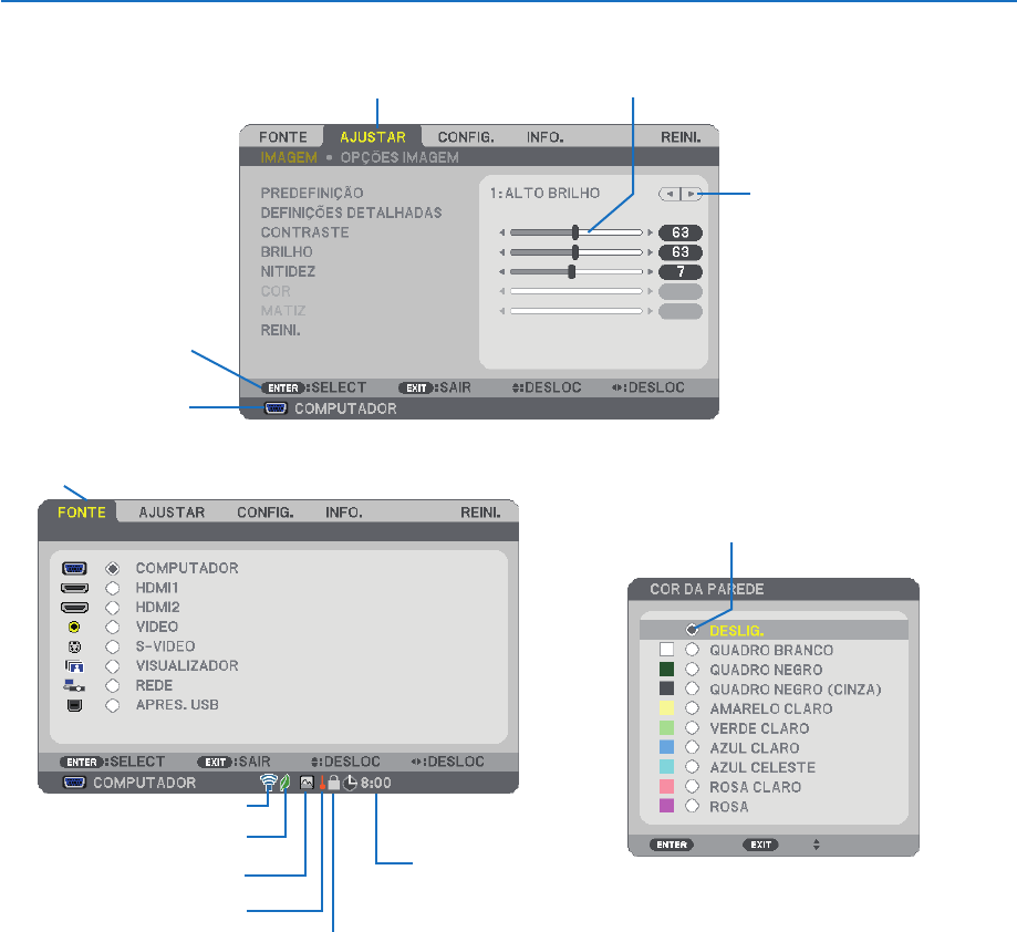 Barra deslizante ...............................Indica as configurações ou a direção do ajuste.