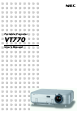 Important Information Safety Cautions Precautions Please read this manual carefully before using your NEC VT770 Projector and keep the manual handy for future reference. Your serial number is located on the bottom of your projector. Record it here: CAUTION To turn off main power, be sure to remove the plug from power outlet. The power outlet socket should be installed as near to the equipment as possible, and should be easily accessible. CAUTION TO PREVENT SHOCK, DO NOT OPEN THE CABINET.
