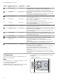 Reiniging en onderhoud Gebied Roestvrijstalen binnenlijst van de deur Deurgreep Deurafdichting nl Geschikte schoonmaak- Aanwijzingen middelen RVS-reiniger Verkleuringen kunnen verwijderd worden met reinigingsmiddelen voor roestvrij staal. Geen schoonmaakmiddelen voor roestvrij staal gebruiken. ¡ Warm zeepsop Om vlekken die niet meer verwijderd kunnen worden te voorkomen, het ontkalkingsmiddel dat op het oppervlak terechtkomt direct verwijderen. ¡ Warm zeepsop Niet afnemen en niet schuren.