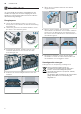 Gerätetür 8. Türscheiben von beiden Seiten mit Glasreiniger und einem weichen Tuch reinigen. : Warnung Verletzungsgefahr! Zerkratztes Glas der Gerätetür kann springen. Keinen Glasschaber, scharfe oder scheuernde Reinigungsmittel benutzen. 9. Türscheiben trocknen und wieder einbauen. de 5. Zwischenscheibe im Bereich ƒ nach unten drücken, Halterung „ schräg einschieben und andrücken, bis sie einrastet (Bild &). Halterung ist eingesetzt (Bild ').
