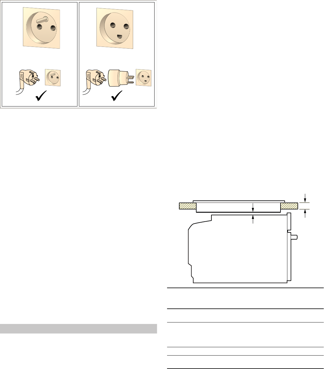 - ■ Gömme mobilyalar 90 °C'lik sıcaklığa kadar, yan mobilya yüzeyleri ise 65 °C'lik sıcaklığa kadar dayanıklı olmalıdır.