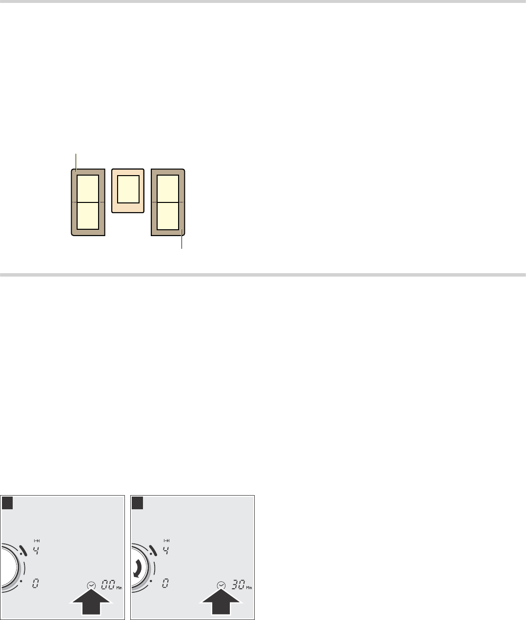 - Zonen slukker. Der lyder et advarselssignal, og kogefeltet viser ‹, og på displayet til tidsprogrammering vises ‹‹ i et minut. Displayet x for kogefeltet blinker. Hvis du trykker på et symbol, slukkes displayerne, og det akustiske signal oph...