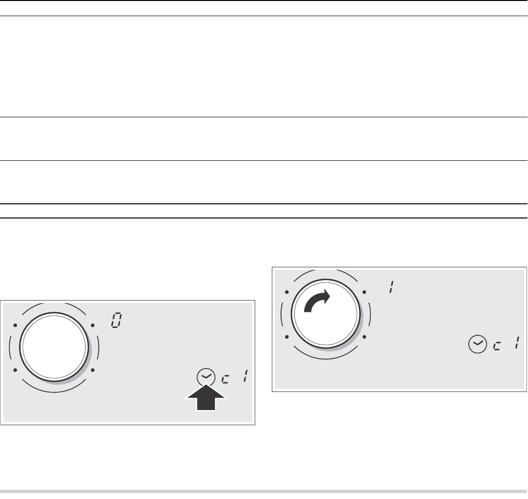 - Zonen slukker. Der lyder et advarselssignal, og kogefeltet viser ‹, og på displayet til tidsprogrammering vises ‹‹ i et minut. Displayet x for kogefeltet blinker. Hvis du trykker på et symbol, slukkes displayerne, og det akustiske signal oph...