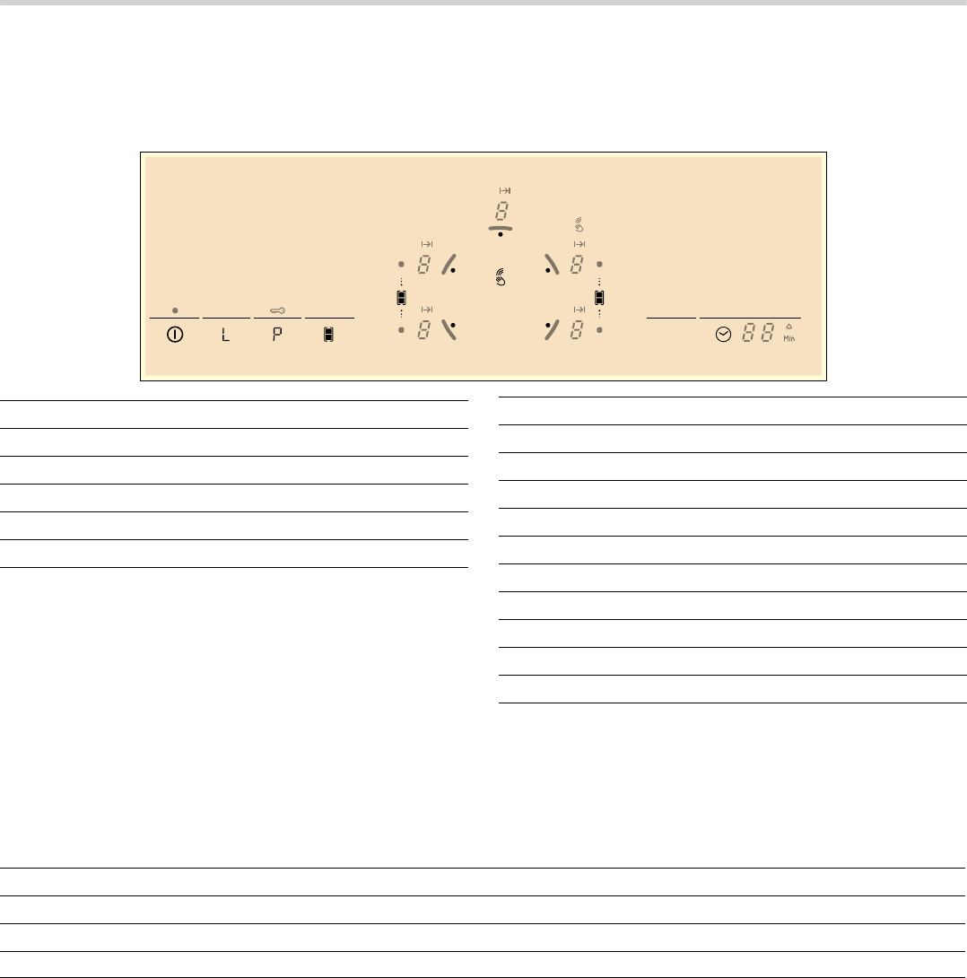 - Zonen slukker. Der lyder et advarselssignal, og kogefeltet viser ‹, og på displayet til tidsprogrammering vises ‹‹ i et minut. Displayet x for kogefeltet blinker. Hvis du trykker på et symbol, slukkes displayerne, og det akustiske signal oph...