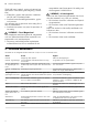 sv Avfallshantering Fel Orsak och felsökning Ingen indikering lyser. Elektronikfel ▶ Kan du inte åtgärda felet, kontakta service. Indikeringarna blinKontrollerna är fuktiga eller så ligger det föremål ovanpå. kar. ▶ Torka av kontrollerna eller ta bort föremålet. Indikeringen - blinkar Det har uppstått ett elektronikfel. på kokzonsindikering- ▶ Kvittera felet genom att täcka över kontrollerna med handen ett slag. arna. , , , Elektroniken är överhettad och har slagit av en eller alla kokzoner.