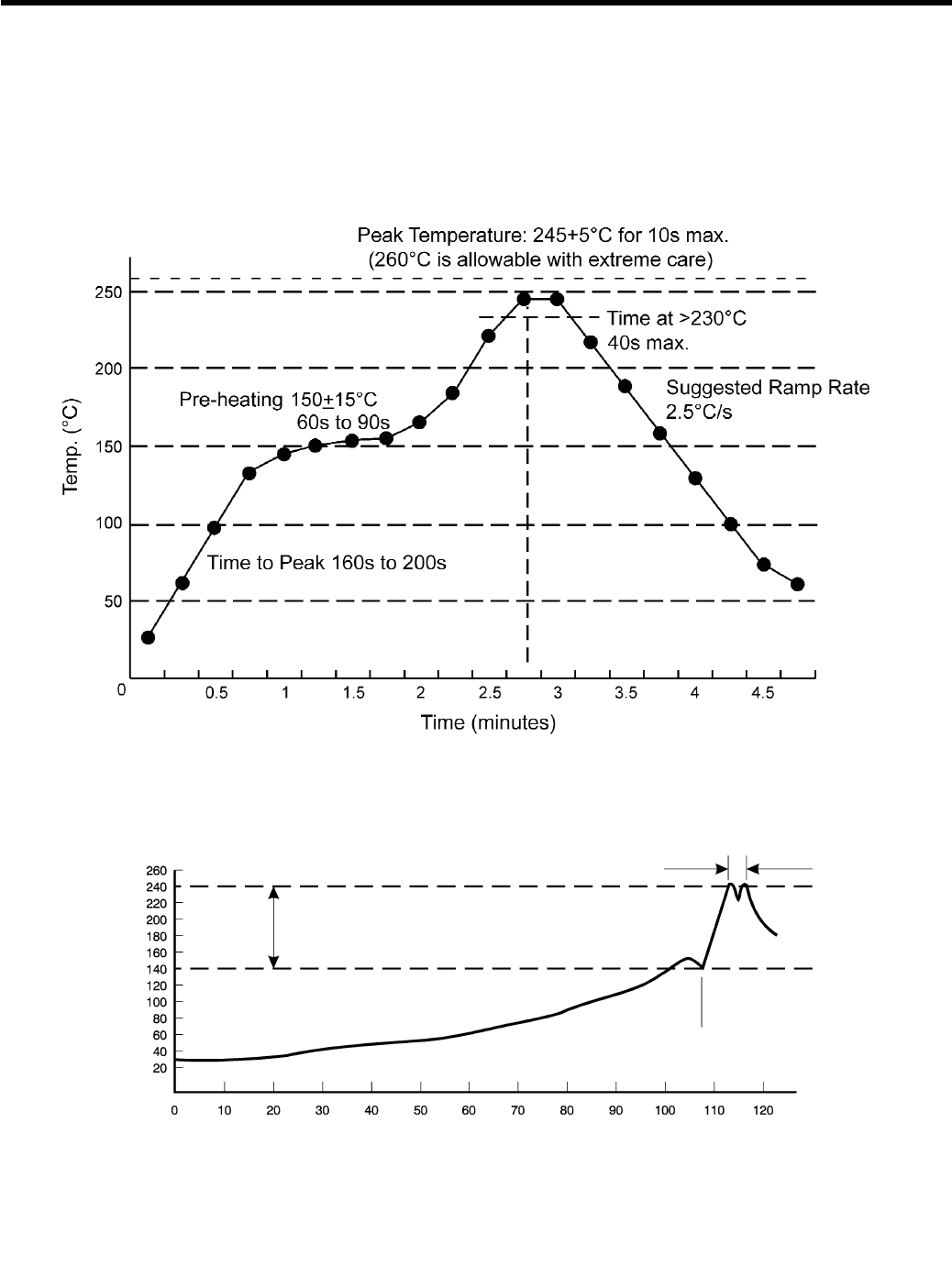 • Recommended soldering profiles are designed to insure that the temperature of the internal construction of the