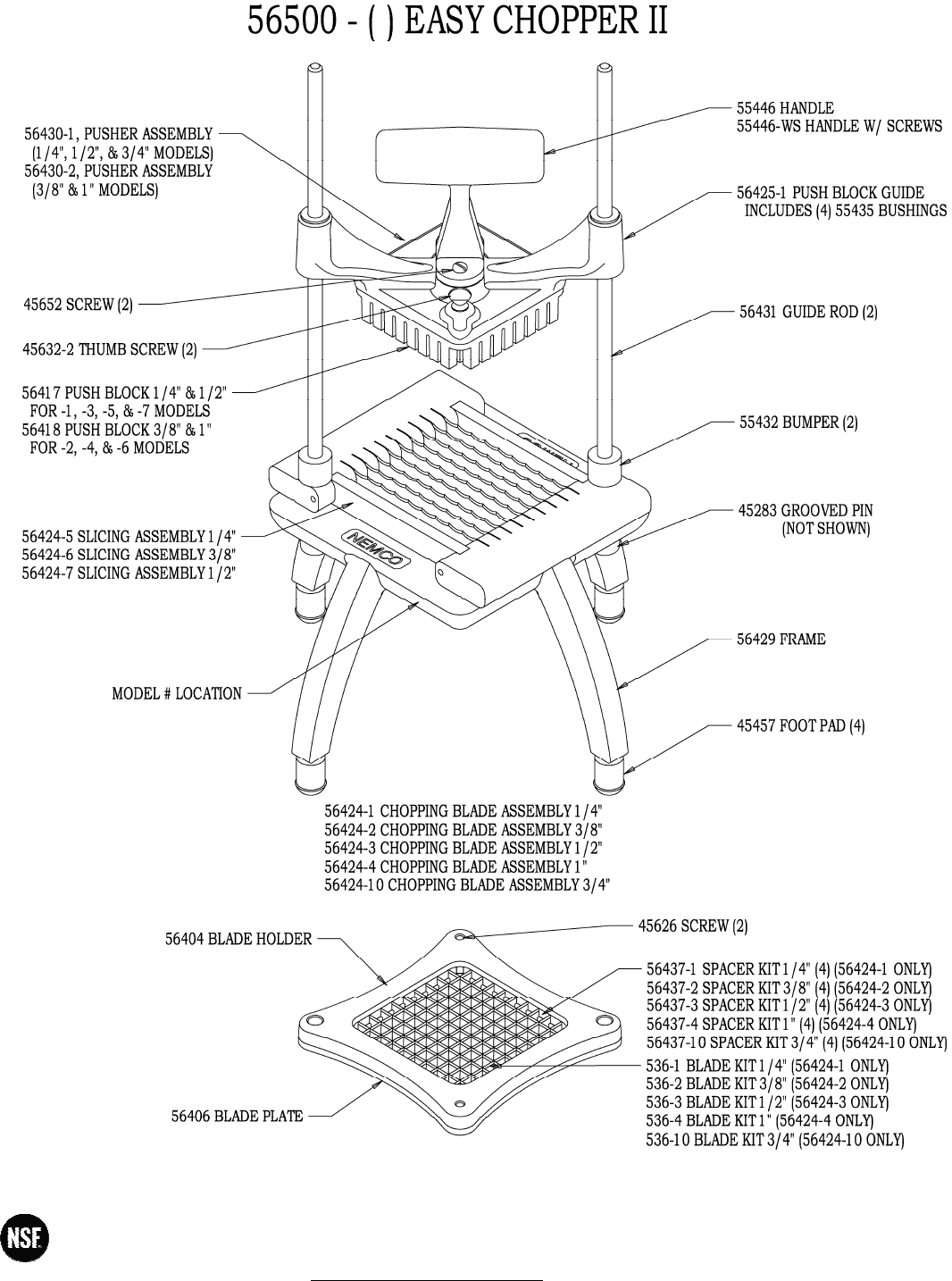 56424-4 1" Square Cut Blade and Holder Assembly for Easy Chopper II, in Silver