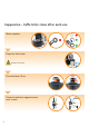 Espresso Insert capsule Place a cup on drip grid Select small or large cup STOP automatic or The capsule drops into capsule container Eject capsule Keep system warm Daily after last espresso Capsule container Some left over water is normal 6