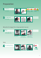 Preparation Temperature indicator: Switch on flashing: constant: rapid flashing: heating up ready too hot Jaw closed Fill water tank fresh water Before the first usage / after a longer period of non-use: Rinse 1. 3. Coffee outlet + hot water / steam nozzle 2. 4. Place a recipient on cup tray Let water flow for 1 minute, press buttom repeatedly Let water flow for 1 minute, press buttom repeatedly Daily: 1. Pre-heating / rinsing 2.