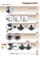 Cappuccino Froth milk for Preparing the milk Select «steam» heating up ready STOP Froth OK Beware of hot nozzle Temperature change ~55-75°C ready STOP Cool down system too hot Place a recipient Let water flow for 30 seconds see 8 Espresso Prepare espresso direct into the frothed up milk