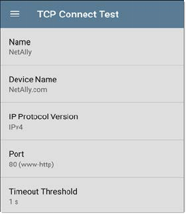 TCP Connect Test Settings