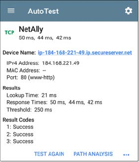 AutoTest TCP Results Screen