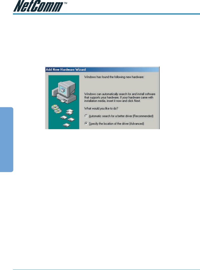 iii At the following prompt, select ‘Specify the location of the driver (Advanced)’ and