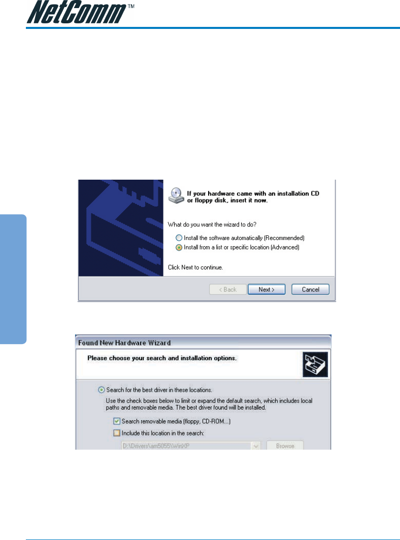iii At the following prompt, select Install from a list or specific location (Advanced)