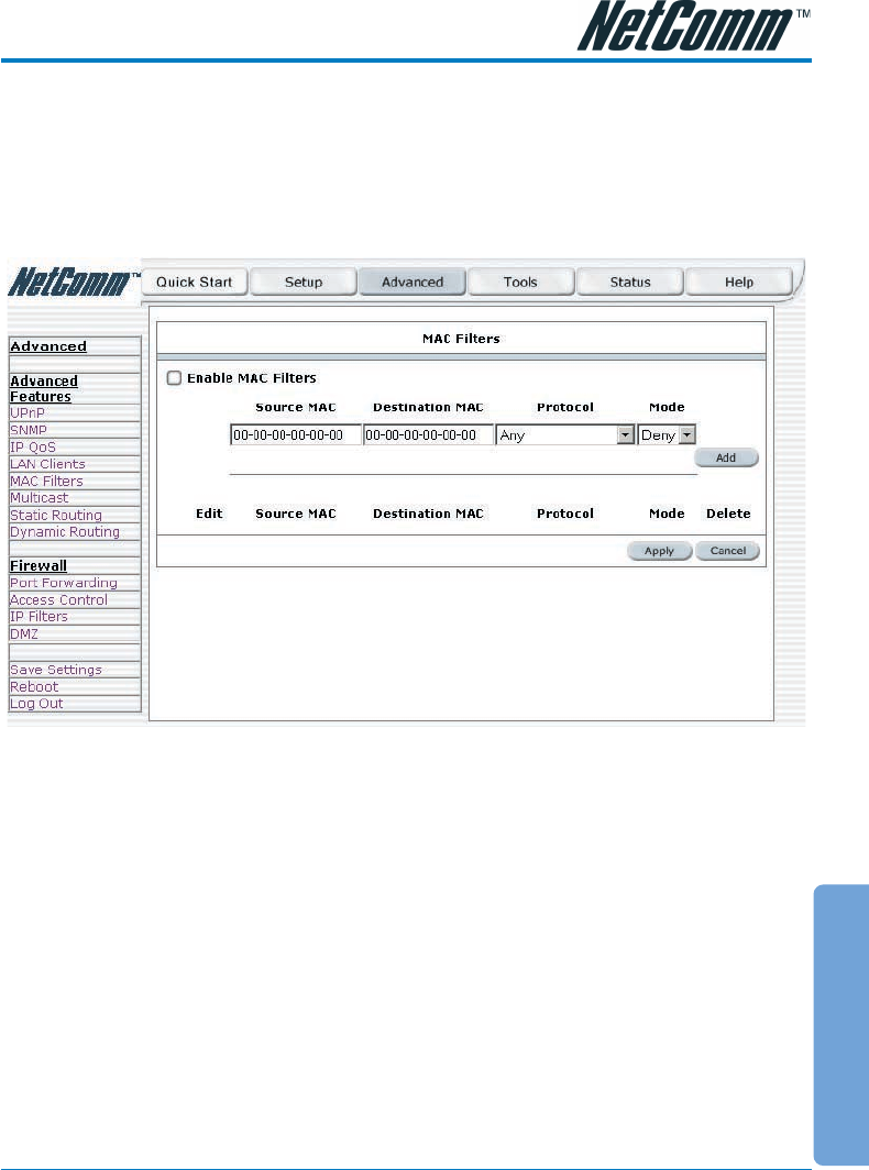 To access MAC Filters Control, click on Advanced>Advanced Features>MAC Filters .