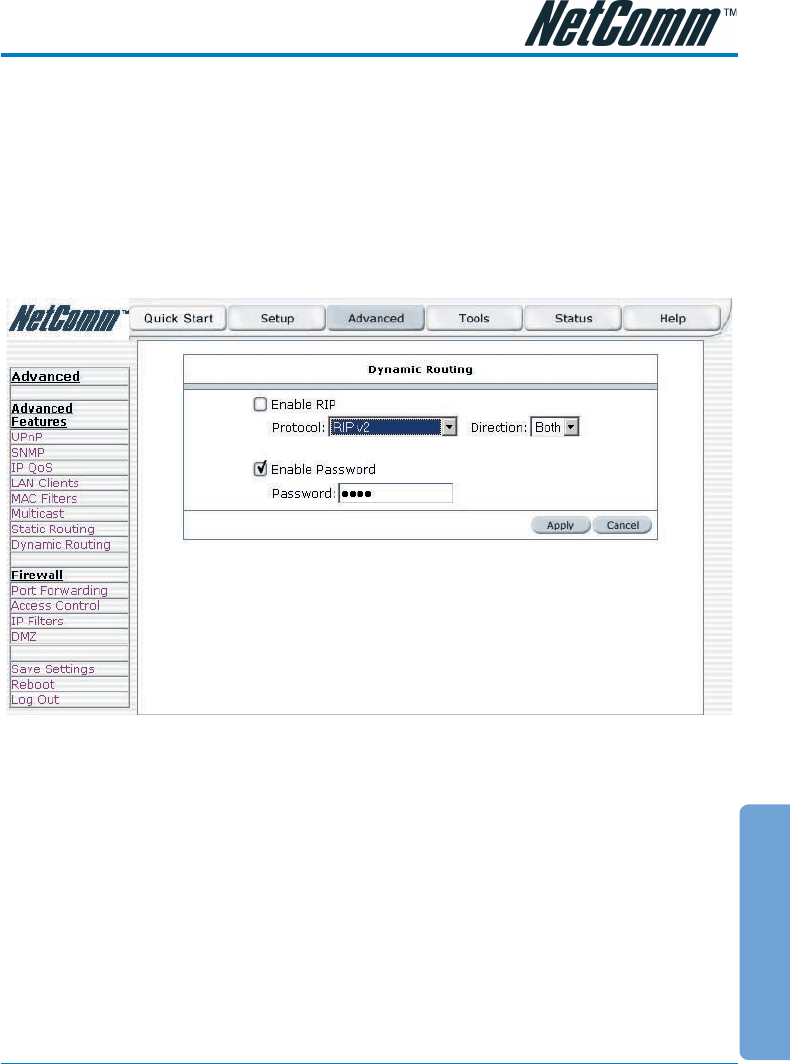 Dynamic Routing makes use of the RIP Protocol to allow the ADSL Router to automatically adjust