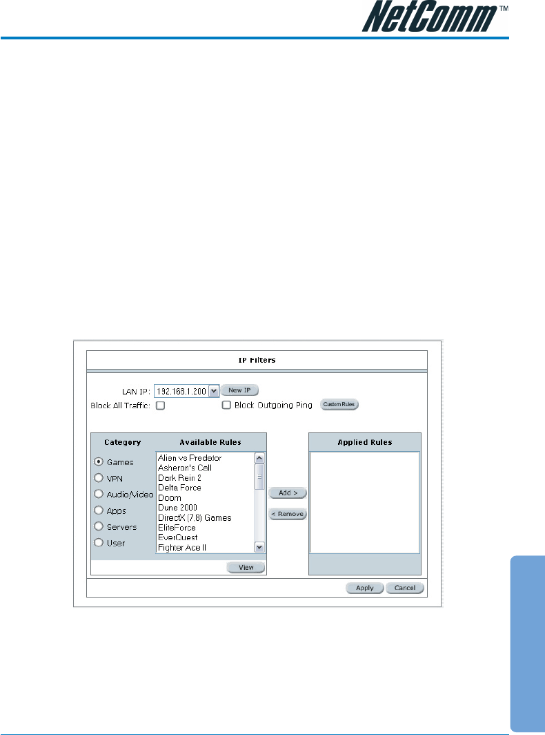 Clients or specify Custom IP filters that will control the flow of data across the router.