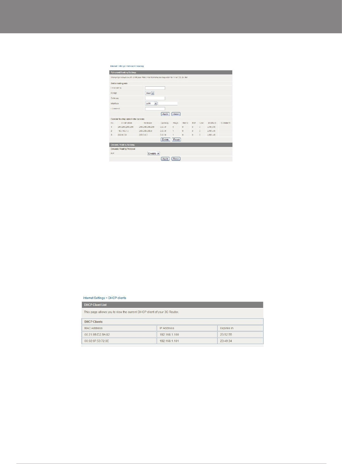 This page allows you to congure static and dynamic routing rules for your 3G Router.