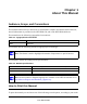 Chapter 1 About This Manual Audience, Scope, and Conventions This manual assumes that you have basic to intermediate computer and Internet skills. However, tutorial information is provided on the NETGEAR CD, and on the NETGEAR Web site. This manual uses the following typographical conventions: Table 1-1.