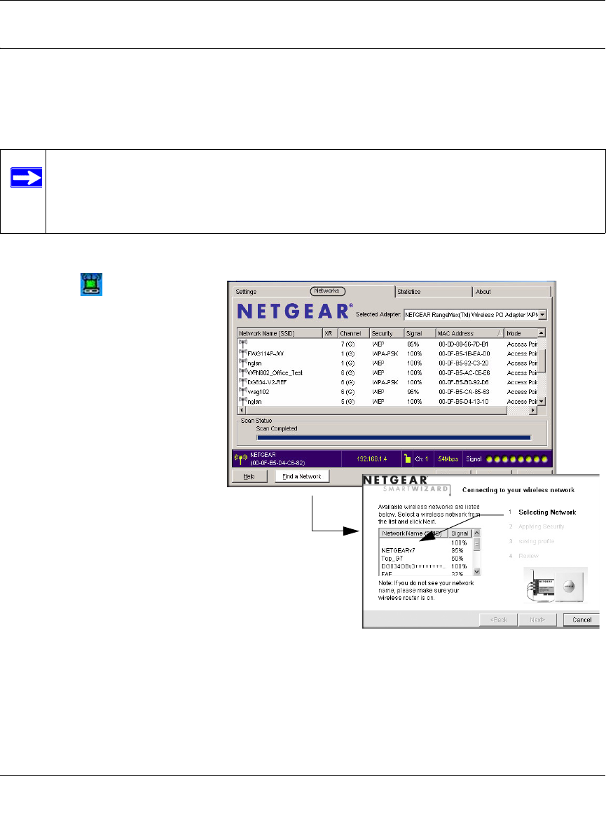 During the WN311T software installation, the Smart Wizard lists the available networks. After