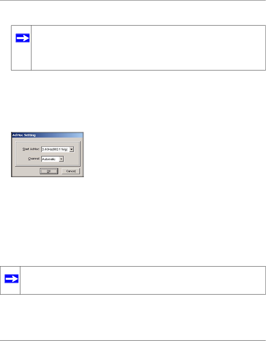 4. In the Start Ad Hoc field, choose the wireless standard (802.11a, 802.11b, or 802.11g) for your