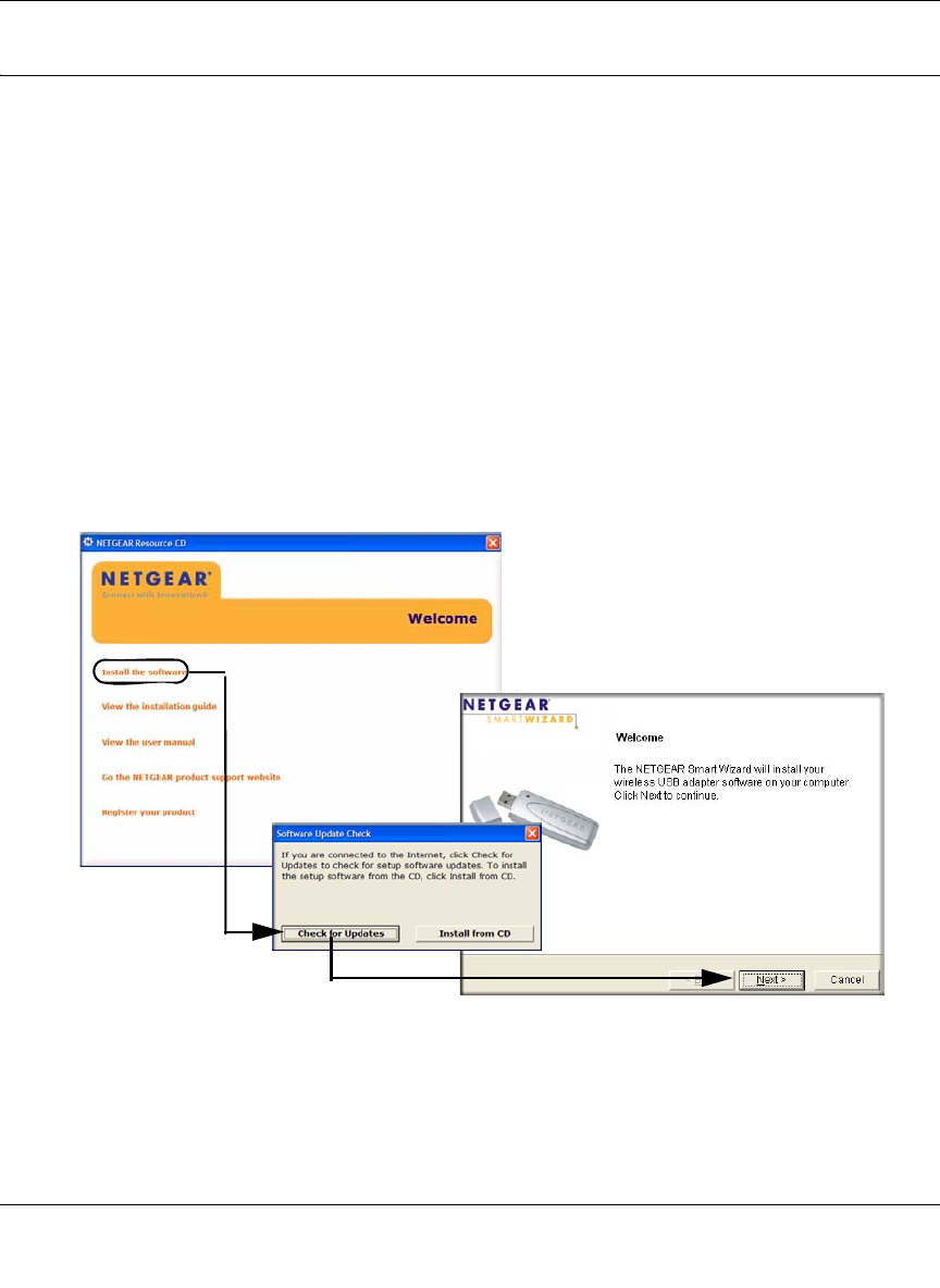 1. First, install the software. Insert the NETGEAR CD. If the CD main page does not appear,