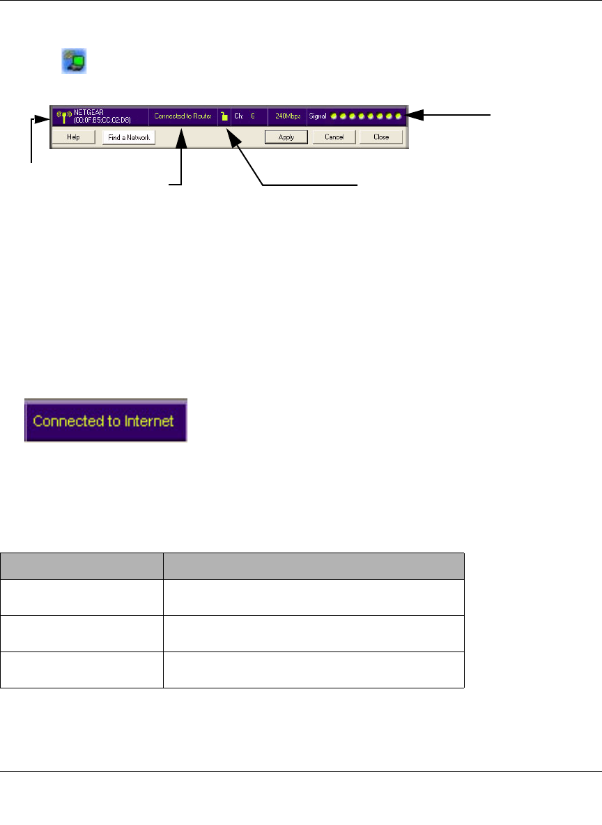 • Signal Strength: Shows the signal strength of the wireless network. If the signal is poor, then