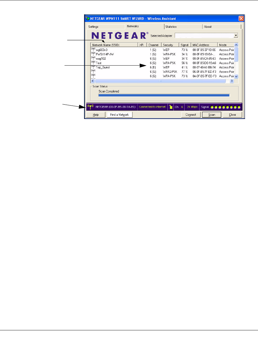 • Security: Identifies whether the wireless network uses WEP or WPA-PSK security settings.